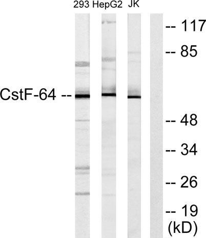 The antiserum was produced against synthesized peptide derived from human CSTF2. AA range:11-60