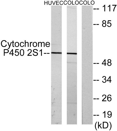 The antiserum was produced against synthesized peptide derived from human Cytochrome P450 2S1. AA range:181-230