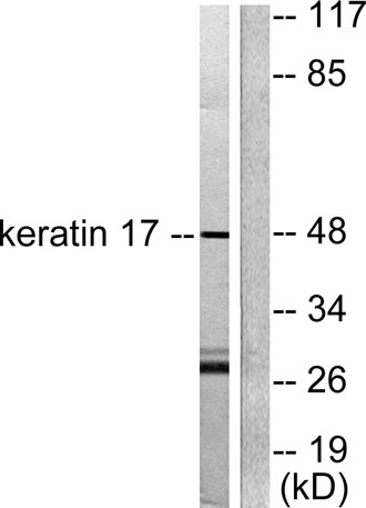 The antiserum was produced against synthesized peptide derived from human Keratin 17. AA range:381-430
