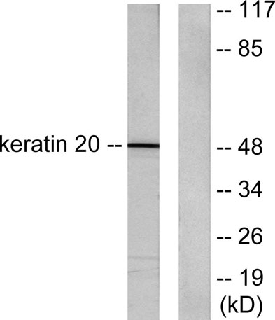 The antiserum was produced against synthesized peptide derived from human Keratin 20. AA range:375-424