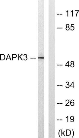 The antiserum was produced against synthesized peptide derived from human DAPK3. AA range:241-290
