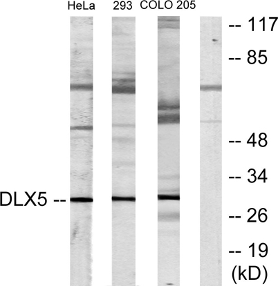 The antiserum was produced against synthesized peptide derived from human DLX5. AA range:91-140