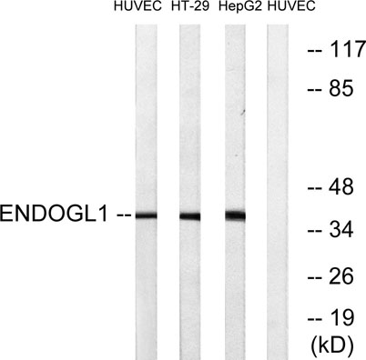 The antiserum was produced against synthesized peptide derived from human ENDOGL1. AA range:171-220