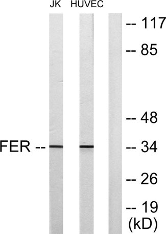 The antiserum was produced against synthesized peptide derived from human FER. AA range:766-815
