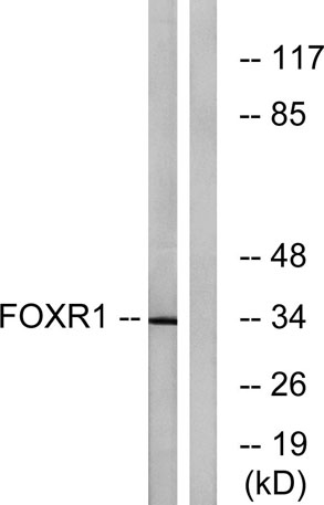 The antiserum was produced against synthesized peptide derived from human FOXR1. AA range:231-280