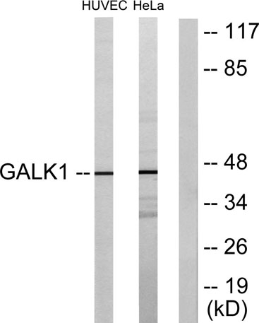 The antiserum was produced against synthesized peptide derived from human GALK1. AA range:1-50