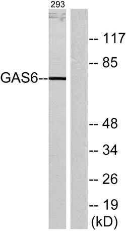 The antiserum was produced against synthesized peptide derived from human GAS6. AA range:291-340