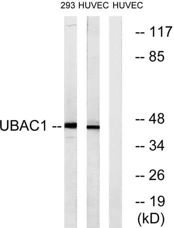 The antiserum was produced against synthesized peptide derived from human UBAC1. AA range:91-140