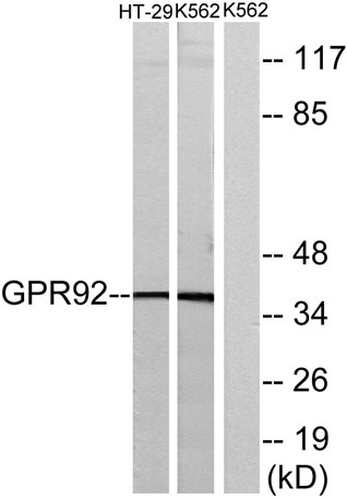 The antiserum was produced against synthesized peptide derived from human GPR92. AA range:241-290