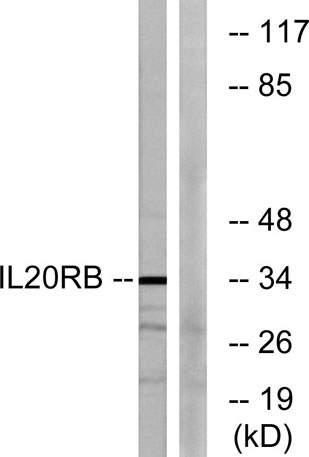 Immunogen: The antiserum was produced against synthesized peptide derived from human IL20RB. AA range:141-190