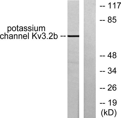 The antiserum was produced against synthesized peptide derived from human Potassium Channel Kv3.2b. AA range:589-638
