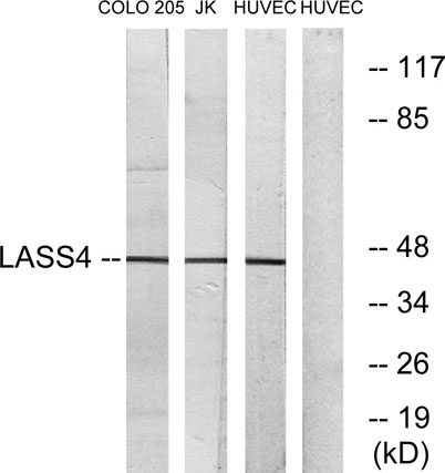 The antiserum was produced against synthesized peptide derived from human LASS4. AA range:41-90