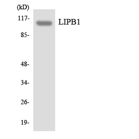 The antiserum was produced against synthesized peptide derived from human LIPB1. AA range:300-349