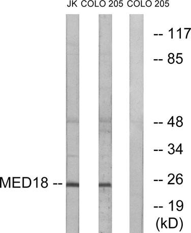 The antiserum was produced against synthesized peptide derived from human MED18. AA range:70-119