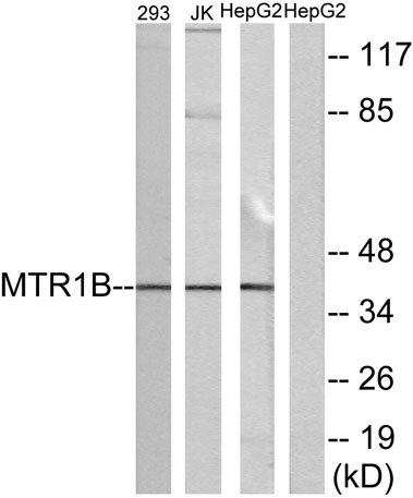 Immunogen: The antiserum was produced against synthesized peptide derived from human MTR1B. AA range:301-350