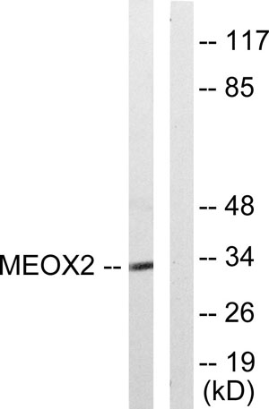 The antiserum was produced against synthesized peptide derived from human MEOX2. AA range:151-200
