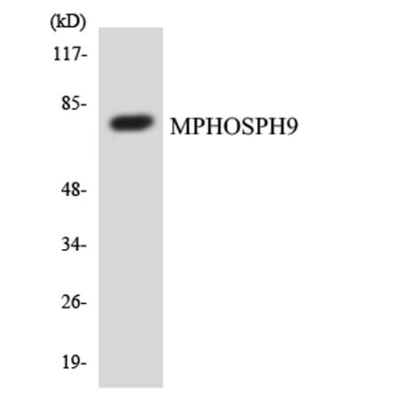 The antiserum was produced against synthesized peptide derived from human MPHOSPH9. AA range:539-588