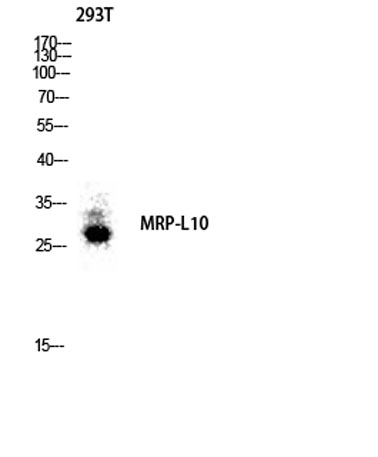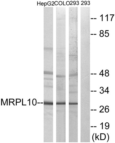 The antiserum was produced against synthesized peptide derived from human MRPL10. AA range:211-260