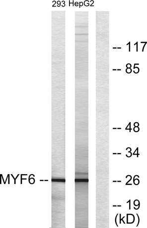 The antiserum was produced against synthesized peptide derived from human MYF6. AA range:116-165