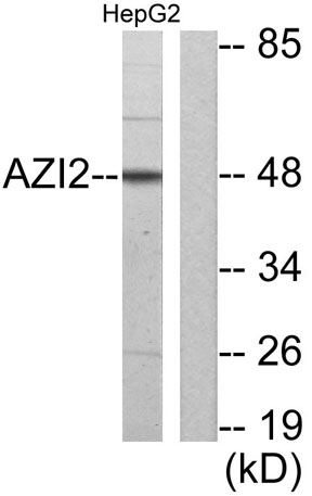 Immunogen: The antiserum was produced against synthesized peptide derived from human AZI2. AA range:10-59