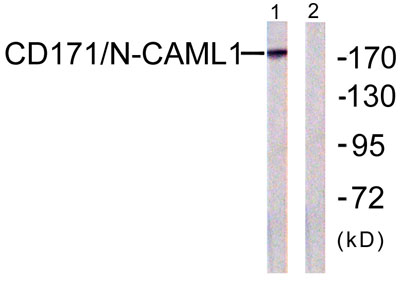 The antiserum was produced against synthesized peptide derived from human CD171/N-CAML1. AA range:1147-1196