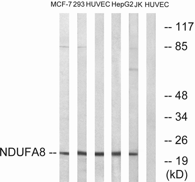 The antiserum was produced against synthesized peptide derived from human NDUFA8. AA range:109-158