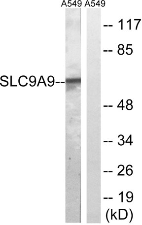 The antiserum was produced against synthesized peptide derived from human SLC9A9. AA range:171-220