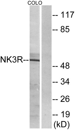 Immunogen: The antiserum was produced against synthesized peptide derived from human NK3R. AA range:401-450