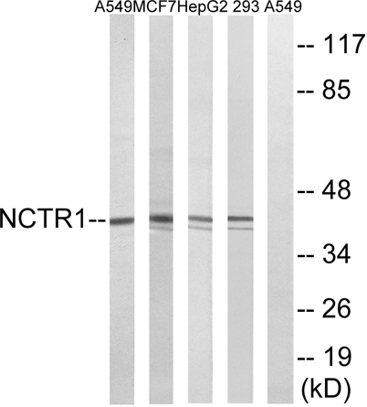 The antiserum was produced against synthesized peptide derived from human NCR1. AA range:145-194