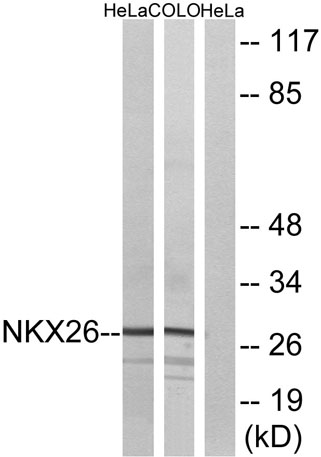 Immunogen: The antiserum was produced against synthesized peptide derived from human NKX26. AA range:91-140