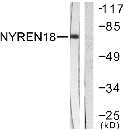 Immunogen: The antiserum was produced against synthesized peptide derived from human NYREN18. AA range:566-615