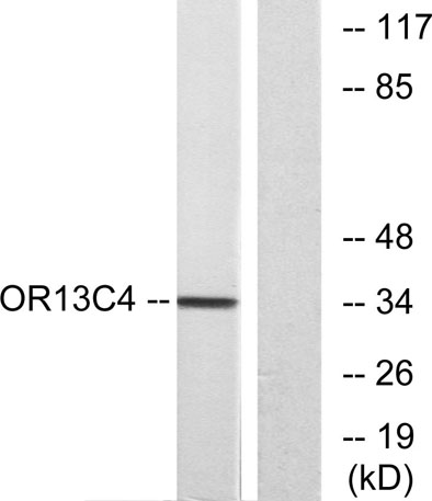 The antiserum was produced against synthesized peptide derived from human OR13C4. AA range:201-250