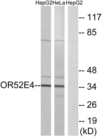 The antiserum was produced against synthesized peptide derived from human OR52E4. AA range:200-249