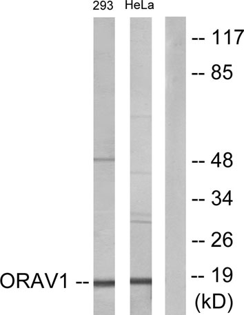 The antiserum was produced against synthesized peptide derived from human ORAV1. AA range:81-130