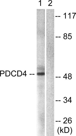 The antiserum was produced against synthesized peptide derived from human PDCD4. AA range:420-469
