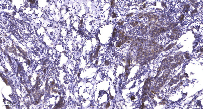 Immunohistochemical analysis of paraffin-embedded human Breast cancer. 1, Antibody was diluted at 1:200(4° overnight). 2, Tris-EDTA,pH9.0 was used for antigen retrieval. 3,Secondary antibody was diluted at 1:200(room temperature, 45min).