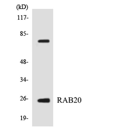 The antiserum was produced against synthesized peptide derived from human RAB20. AA range:115-164