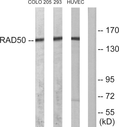 The antiserum was produced against synthesized peptide derived from human RAD50. AA range:681-730