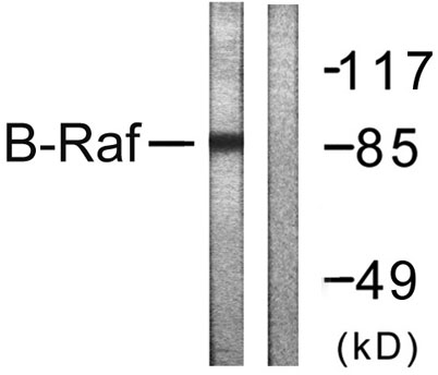 The antiserum was produced against synthesized peptide derived from human B-RAF. AA range:576-625