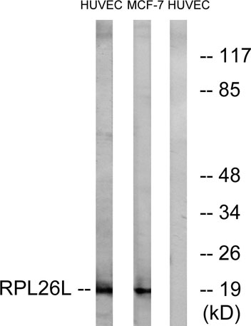 The antiserum was produced against synthesized peptide derived from human RPL26L. AA range:96-145